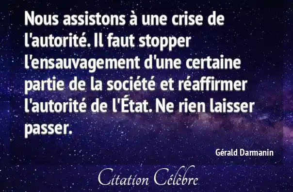 Nous assistons à une crise de l'autorité. Il faut stopper l'ensauvagement d'une certaine partie de la société et réaffirmer l'autorité de l'État. Ne rien laisser passer.