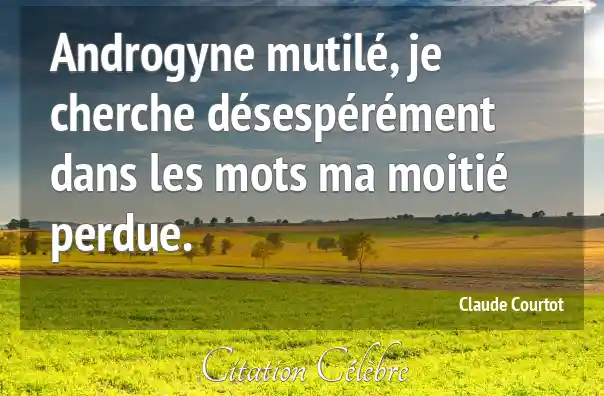 Androgyne mutilé, je cherche désespérément dans les mots ma moitié perdue.