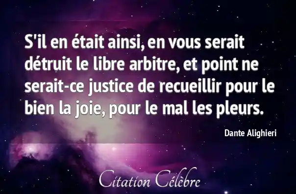 S'il en était ainsi, en vous serait détruit le libre arbitre, et point ne serait-ce justice de recueillir pour le bien la joie, pour le mal les pleurs.