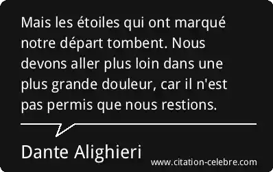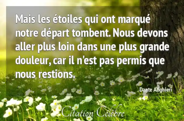 Mais les étoiles qui ont marqué notre départ tombent. Nous devons aller plus loin dans une plus grande douleur, car il n'est pas permis que nous restions.
