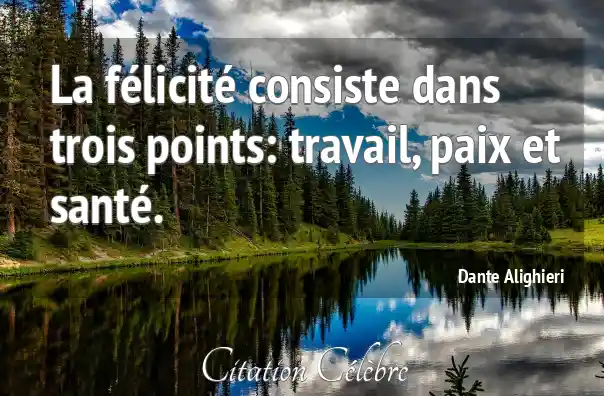 La félicité consiste dans trois points: travail, paix et santé.