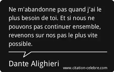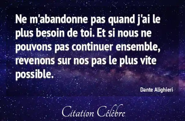 Ne m'abandonne pas quand j'ai le plus besoin de toi. Et si nous ne pouvons pas continuer ensemble, revenons sur nos pas le plus vite possible.