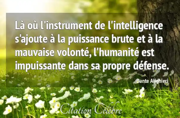 Là où l'instrument de l'intelligence s'ajoute à la puissance brute et à la mauvaise volonté, l'humanité est impuissante dans sa propre défense.