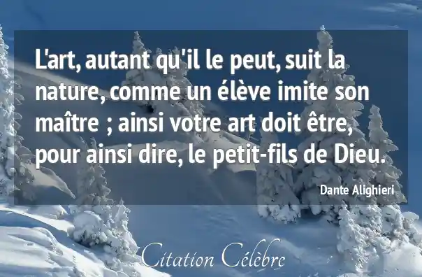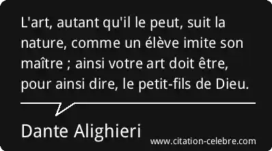 L'art, autant qu'il le peut, suit la nature, comme un élève imite son maître ; ainsi votre art doit être, pour ainsi dire, le petit-fils de Dieu.