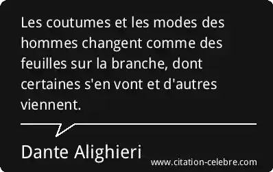Les coutumes et les modes des hommes changent comme des feuilles sur la branche, dont certaines s'en vont et d'autres viennent.