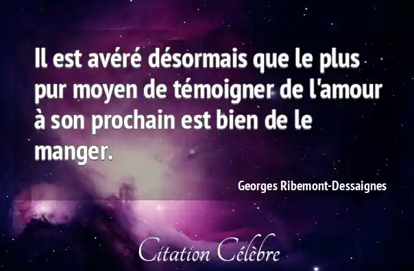 Il est avéré désormais que le plus pur moyen de témoigner de l'amour à son prochain est bien de le manger.