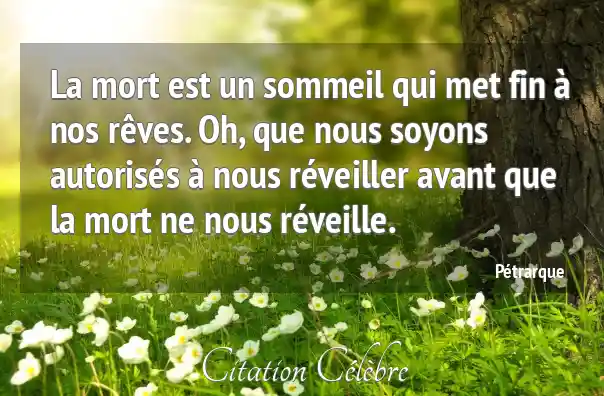 La mort est un sommeil qui met fin à nos rêves. Oh, que nous soyons autorisés à nous réveiller avant que la mort ne nous réveille.