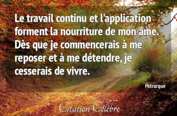 Le travail continu et l'application forment la nourriture de mon âme. Dès que je commencerais à me reposer et à me détendre, je cesserais de vivre.