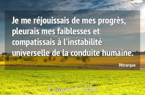 Je me réjouissais de mes progrès, pleurais mes faiblesses et compatissais à l'instabilité universelle de la conduite humaine.