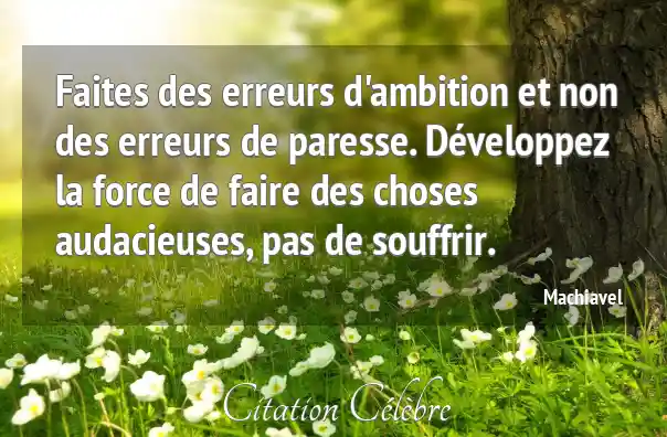 Faites des erreurs d'ambition et non des erreurs de paresse. Développez la force de faire des choses audacieuses, pas de souffrir.