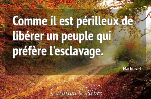 Comme il est périlleux de libérer un peuple qui préfère l'esclavage.