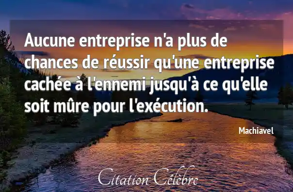 Aucune entreprise n'a plus de chances de réussir qu'une entreprise cachée à l'ennemi jusqu'à ce qu'elle soit mûre pour l'exécution.