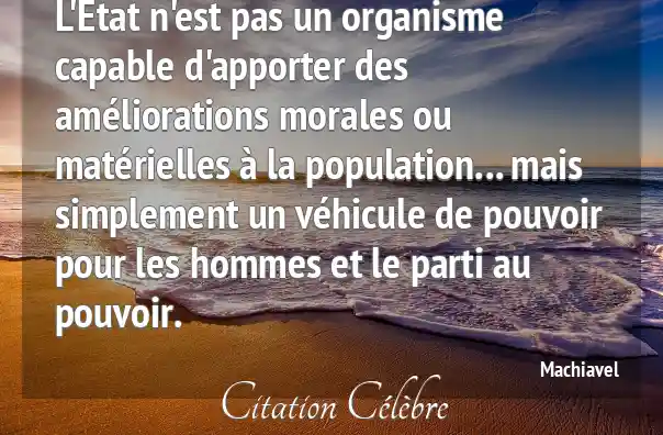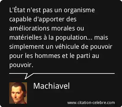 L'État n'est pas un organisme capable d'apporter des améliorations morales ou matérielles à la population... mais simplement un véhicule de pouvoir pour les hommes et le parti au pouvoir.