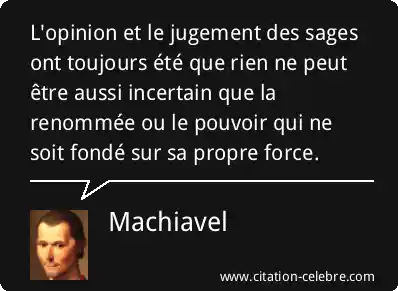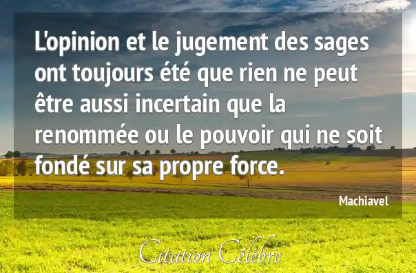 L'opinion et le jugement des sages ont toujours été que rien ne peut être aussi incertain que la renommée ou le pouvoir qui ne soit fondé sur sa propre force.