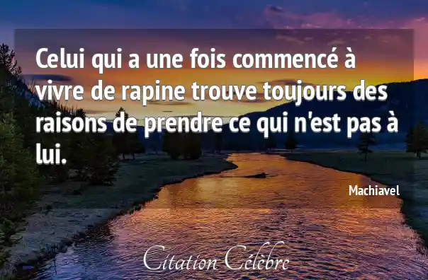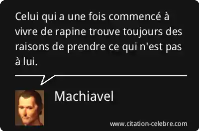 Celui qui a une fois commencé à vivre de rapine trouve toujours des raisons de prendre ce qui n'est pas à lui.