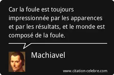 Car la foule est toujours impressionnée par les apparences et par les résultats, et le monde est composé de la foule.