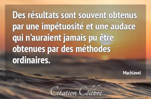 Des résultats sont souvent obtenus par une impétuosité et une audace qui n'auraient jamais pu être obtenues par des méthodes ordinaires.