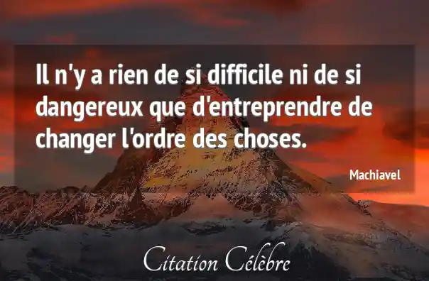 Il n'y a rien de si difficile ni de si dangereux que d'entreprendre de changer l'ordre des choses.