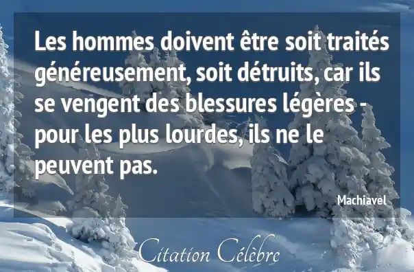 Les hommes doivent être soit traités généreusement, soit détruits, car ils se vengent des blessures légères - pour les plus lourdes, ils ne le peuvent pas.