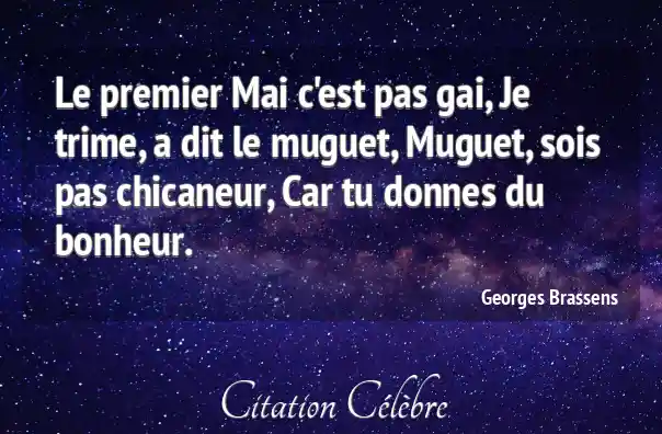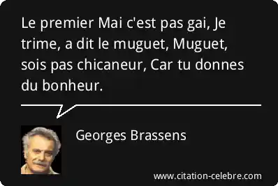 Le premier Mai c'est pas gai, Je trime, a dit le muguet, Muguet, sois pas chicaneur, Car tu donnes du bonheur.
