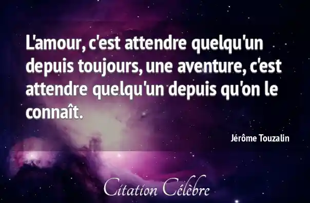 L'amour, c'est attendre quelqu'un depuis toujours, une aventure, c'est attendre quelqu'un depuis qu'on le connaît.