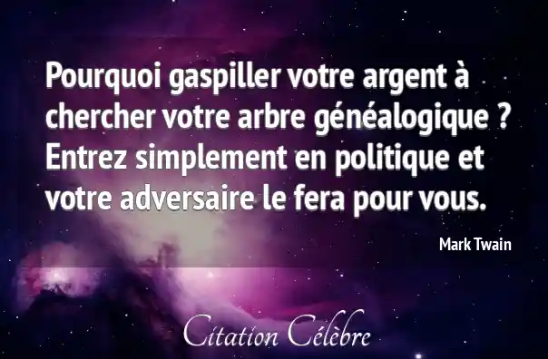 Pourquoi gaspiller votre argent à chercher votre arbre généalogique ? Entrez simplement en politique et votre adversaire le fera pour vous.