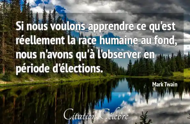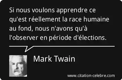 Si nous voulons apprendre ce qu'est réellement la race humaine au fond, nous n'avons qu'à l'observer en période d'élections.