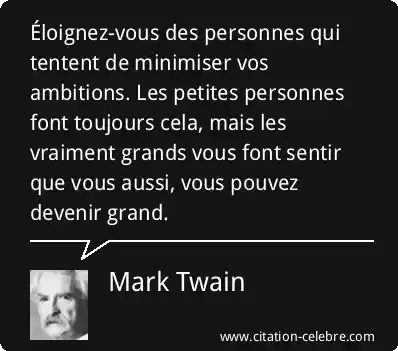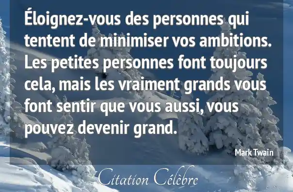 Éloignez-vous des personnes qui tentent de minimiser vos ambitions. Les petites personnes font toujours cela, mais les vraiment grands vous font sentir que vous aussi, vous pouvez devenir grand.