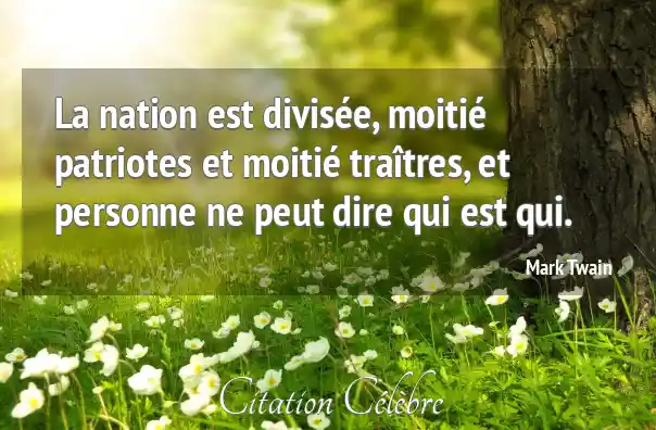 La nation est divisée, moitié patriotes et moitié traîtres, et personne ne peut dire qui est qui.