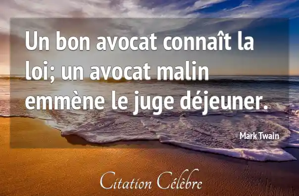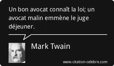 Citation Mark Twain loi : Un bon avocat connaît la loi; un avocat malin emmène...