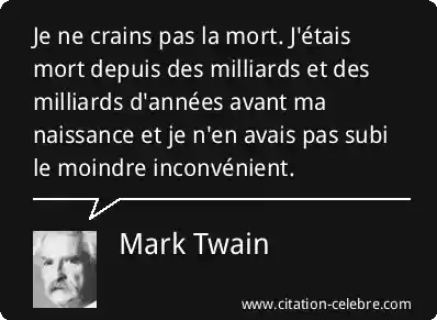 Je ne crains pas la mort. J'étais mort depuis des milliards et des milliards d'années avant ma naissance et je n'en avais pas subi le moindre inconvénient.