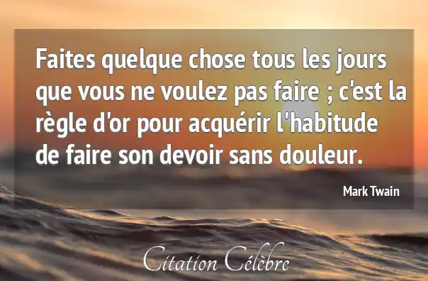 Faites quelque chose tous les jours que vous ne voulez pas faire ; c'est la règle d'or pour acquérir l'habitude de faire son devoir sans douleur.