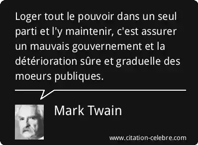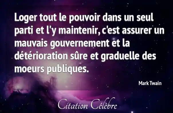 Loger tout le pouvoir dans un seul parti et l'y maintenir, c'est assurer un mauvais gouvernement et la détérioration sûre et graduelle des moeurs publiques.