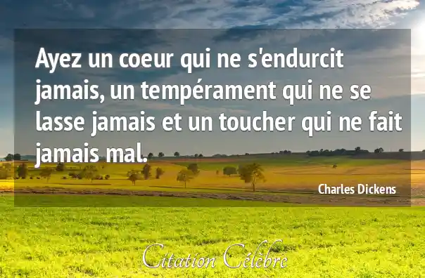 Ayez un coeur qui ne s'endurcit jamais, un tempérament qui ne se lasse jamais et un toucher qui ne fait jamais mal.