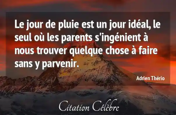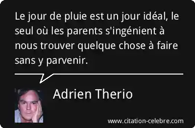 Le jour de pluie est un jour idéal, le seul où les parents s'ingénient à nous trouver quelque chose à faire sans y parvenir.