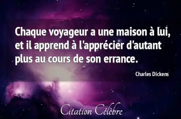 Chaque voyageur a une maison à lui, et il apprend à l'apprécier d'autant plus au cours de son errance.