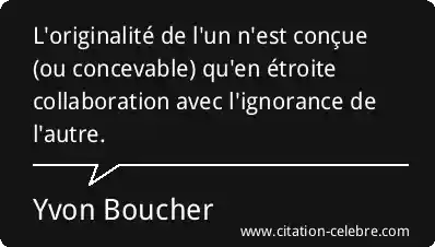 L'originalité de l'un n'est conçue (ou concevable) qu'en étroite collaboration avec l'ignorance de l'autre.