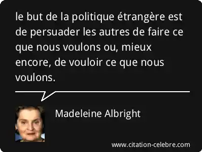 Citation Madeleine Albright politique : le but de la politique étrangère est de persuader les...