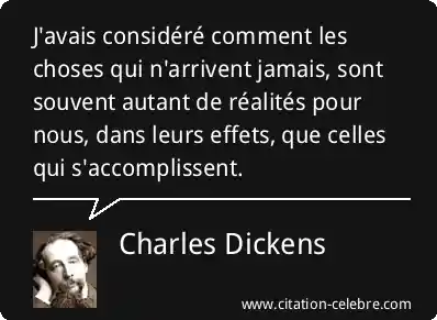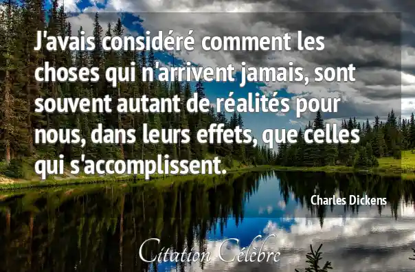 J'avais considéré comment les choses qui n'arrivent jamais, sont souvent autant de réalités pour nous, dans leurs effets, que celles qui s'accomplissent.