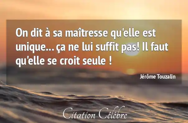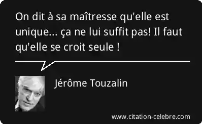 On dit à sa maîtresse qu'elle est unique... ça ne lui suffit pas! Il faut qu'elle se croit seule !
