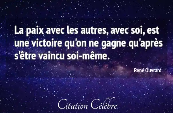 La paix avec les autres, avec soi, est une victoire qu'on ne gagne qu'après s'être vaincu soi-même.