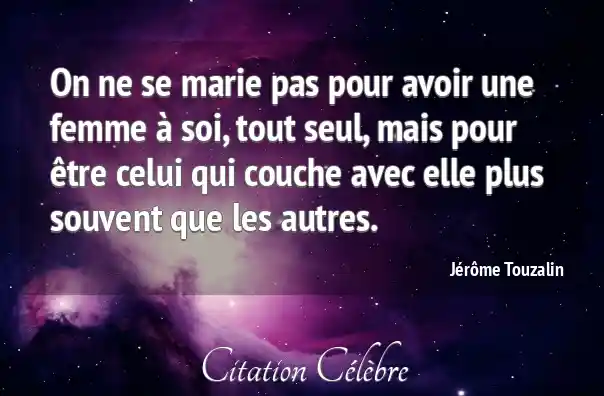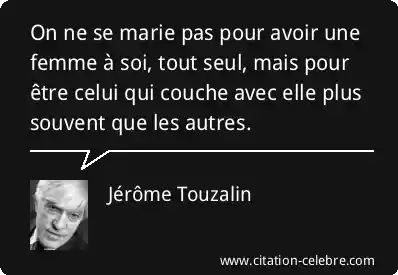 On ne se marie pas pour avoir une femme à soi, tout seul, mais pour être celui qui couche avec elle plus souvent que les autres.
