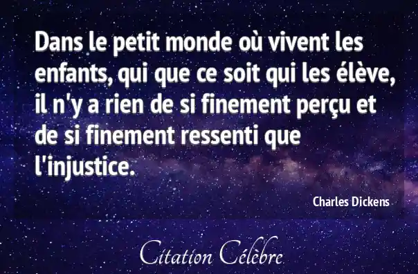 Dans le petit monde où vivent les enfants, qui que ce soit qui les élève, il n'y a rien de si finement perçu et de si finement ressenti que l'injustice.