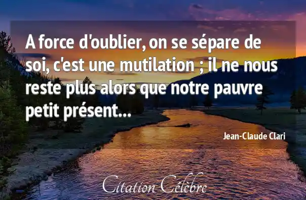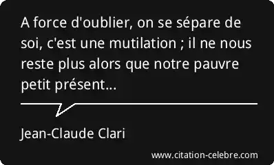 A force d'oublier, on se sépare de soi, c'est une mutilation ; il ne nous reste plus alors que notre pauvre petit présent...