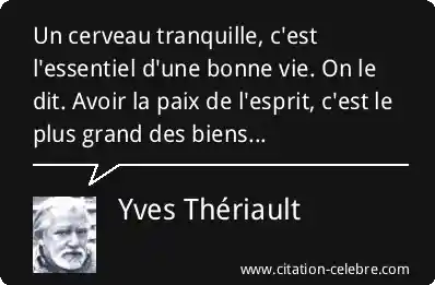 Un cerveau tranquille, c'est l'essentiel d'une bonne vie. On le dit. Avoir la paix de l'esprit, c'est le plus grand des biens...