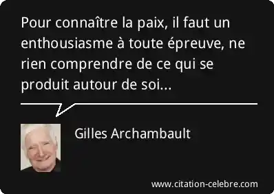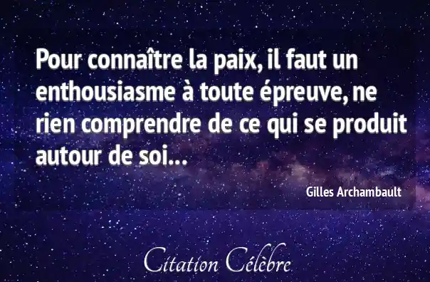 Pour connaître la paix, il faut un enthousiasme à toute épreuve, ne rien comprendre de ce qui se produit autour de soi...