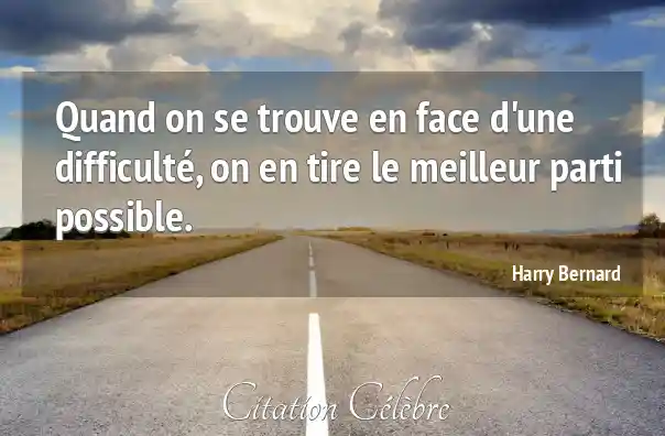 Quand on se trouve en face d'une difficulté, on en tire le meilleur parti possible.