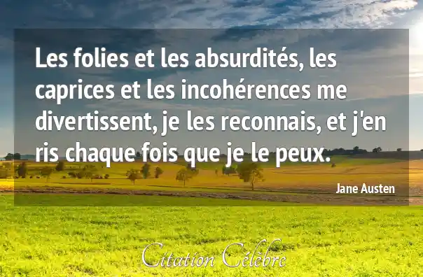 Les folies et les absurdités, les caprices et les incohérences me divertissent, je les reconnais, et j'en ris chaque fois que je le peux.