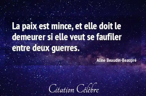 La paix est mince, et elle doit le demeurer si elle veut se faufiler entre deux guerres.