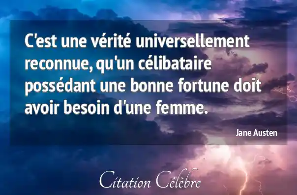 C'est une vérité universellement reconnue, qu'un célibataire possédant une bonne fortune doit avoir besoin d'une femme.
